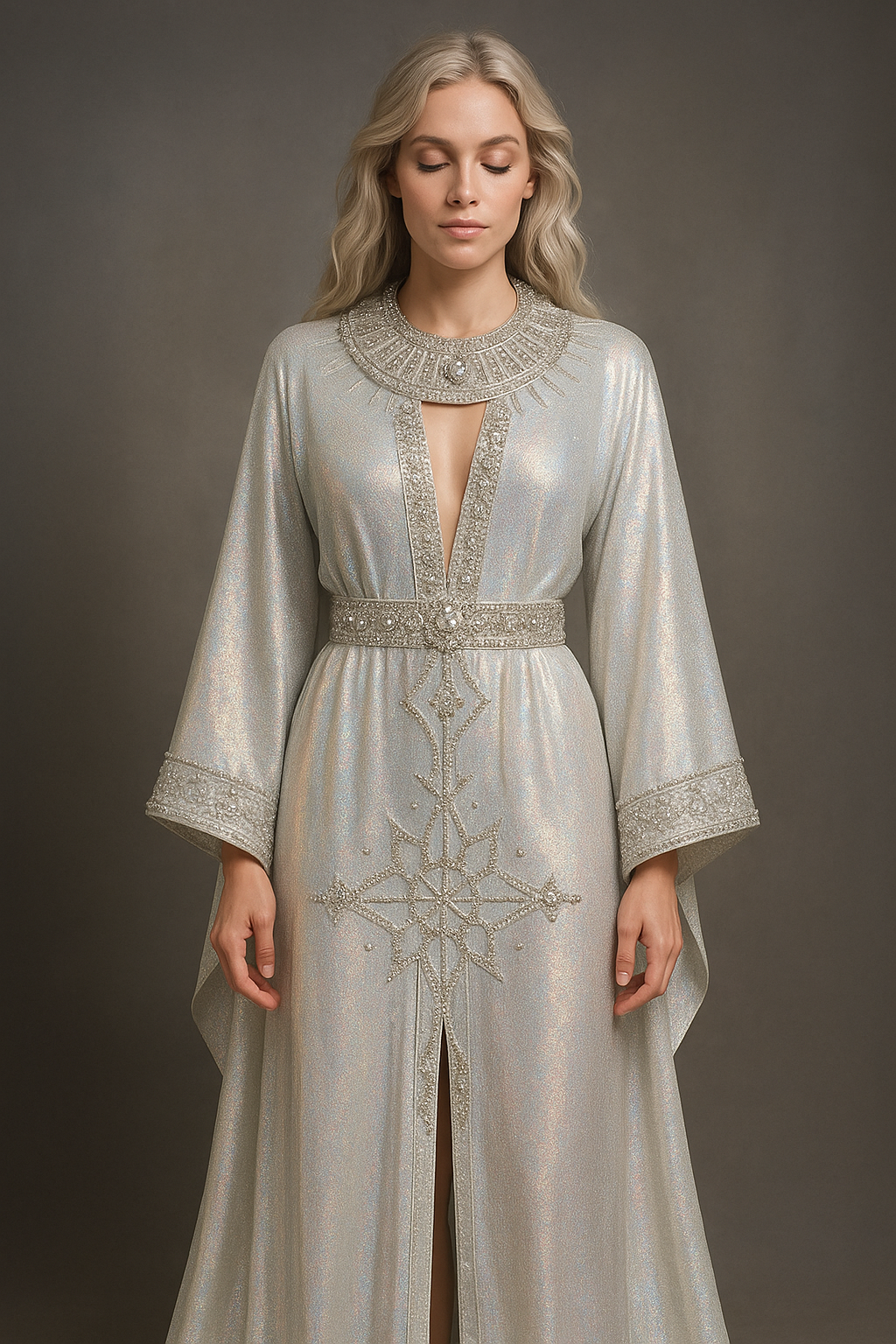It is where the Sanctum explores how clothing can hold sacred geometry, ceremonial presence, architectural silhouettes, encoded symbolism, and a more elevated relationship between adornment and meaning.